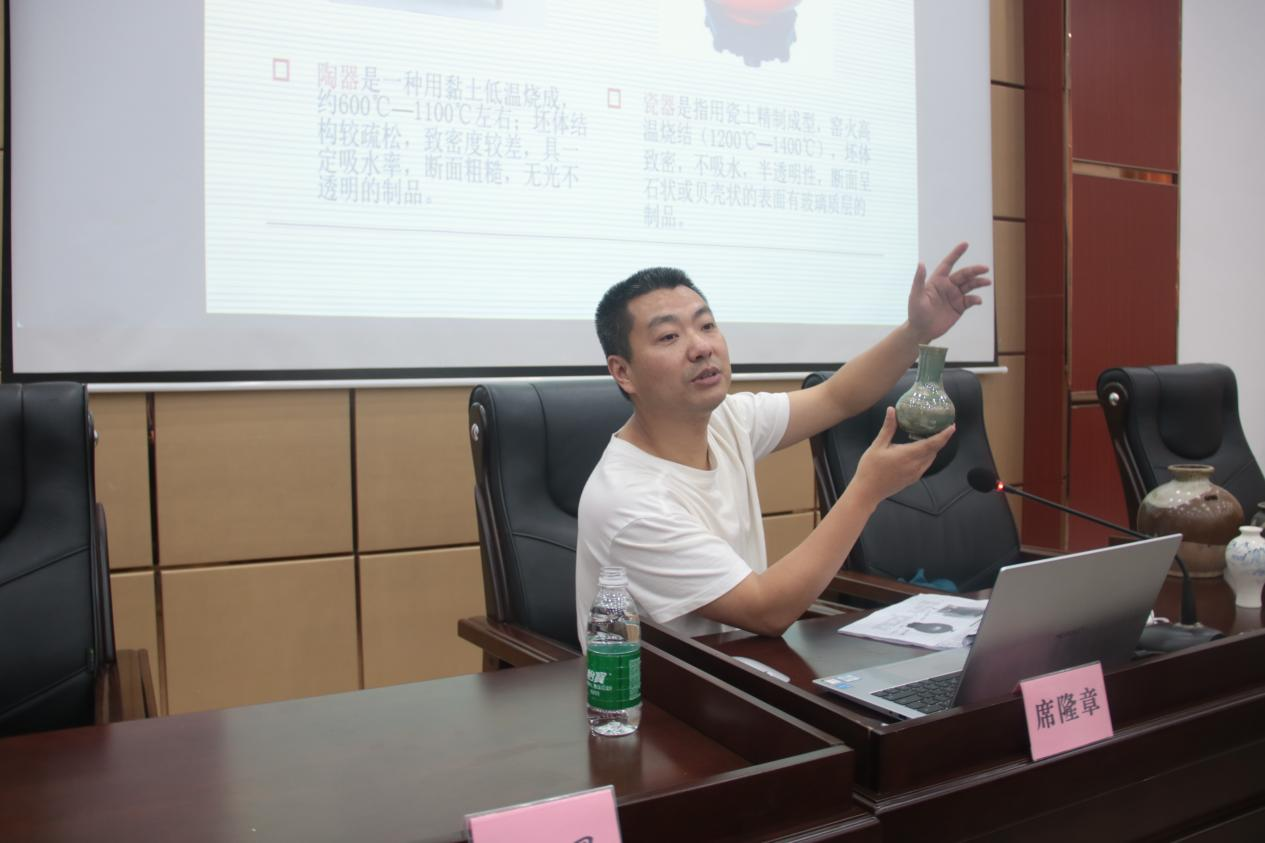 6月4日下午,由艺术与设计学院主办,国家级陶瓷产品设计师、中国工艺美术协会会员、广安市美术家协会常务副秘书长席隆章主讲的“弘扬陶瓷文化 讲好中国故事”的专题讲座在明德楼先圣厅拉开帷幕。本次专题讲座由学院美术学教研室主任金花主持,学院各专业师生参加了本次活动。