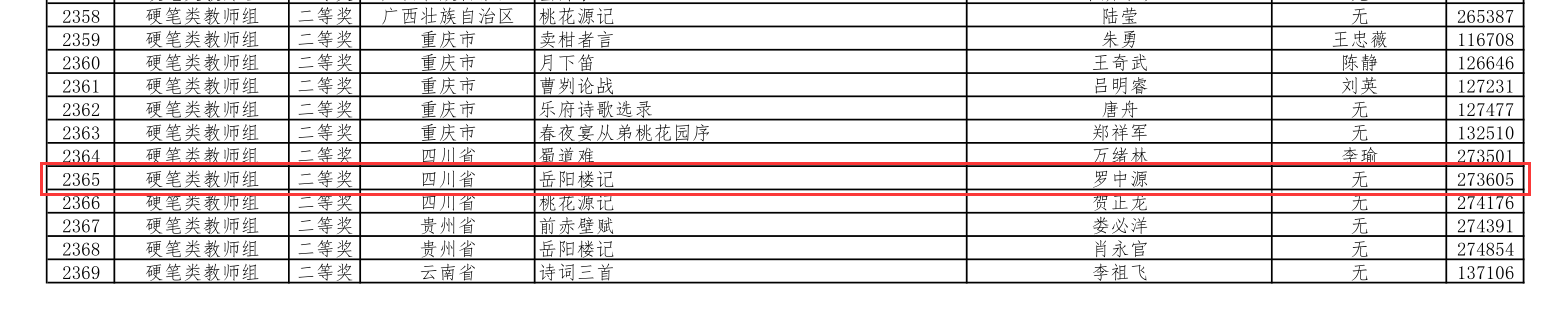 近日,第五届中华经典诵写讲大赛获奖名单揭晓,由美术学教研室罗中源老师创作的书法作品《岳阳楼记》荣获四川省二等奖。