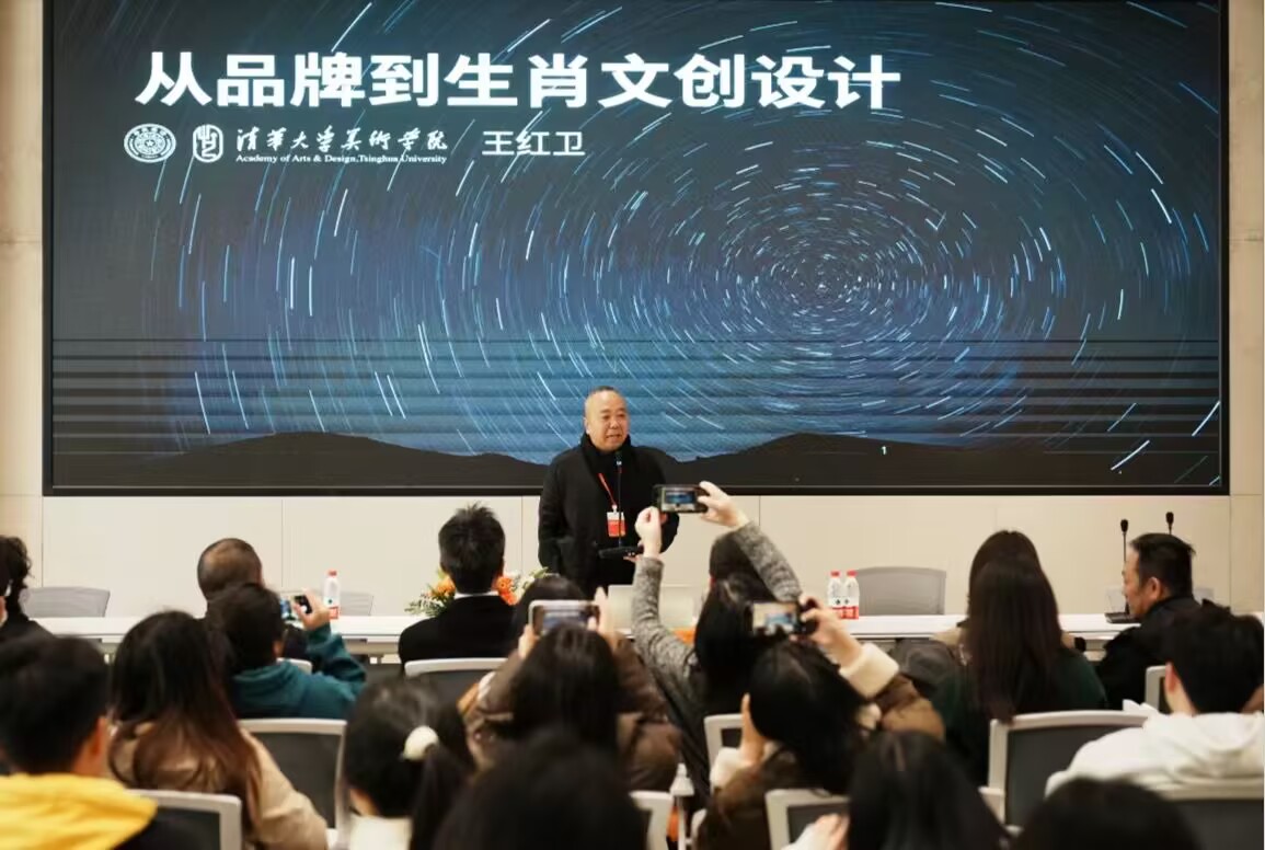 随后,清华大学美术学院视觉传达系教授、博士生导师王红卫带来了《从品牌到文创设计》的讲座。王教授深入浅出地剖析了品牌与文创设计之间的紧密联系,结合大量实际案例,阐述了如何将品牌理念巧妙地融入文创产品,使其既具有商业价值又富有文化内涵,为听众开拓了文创设计的新思路。晏钧设计有限公司合伙人、设计总监崔宝进行了《视觉战略的美学价值・晏钧设计品牌设计方法解析》讲座。他详细解析了晏钧设计的品牌设计方法,深入探讨视觉战略背后的美学价值,让大家对品牌设计有了更为系统和深入的认识,其分享的实战经验为设计专业的师生们提供了宝贵的借鉴。