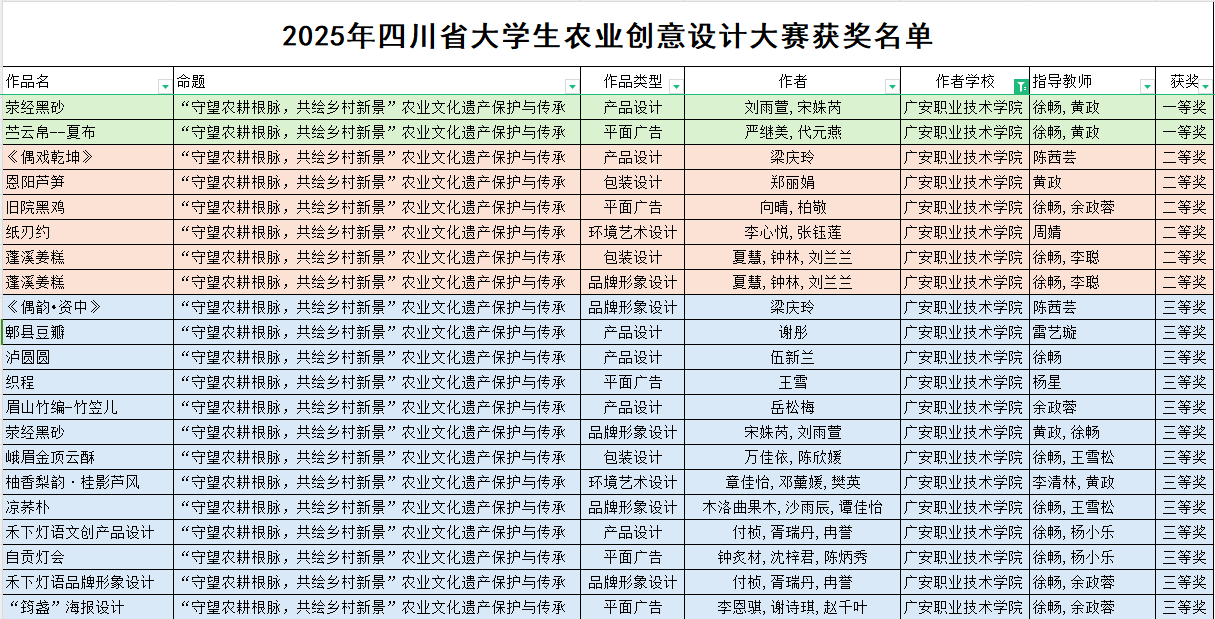 为积极响应国家乡村振兴战略,深入贯彻中央、省委一号文件精神,特别是习近平总书记在中央农村工作会议上的重要讲话精神,推动农业与文化、科技、艺术的深度融合,为四川现代农业发展和乡村全面振兴注入青春动能,培养具有“三农”情怀和创新实践能力的复合型人才,并进一步推动相关院校和不同地区间的专业交流,由四川省教育厅、四川省农业农村厅主办、四川农业大学承办的2025年四川省大学生农业创意设计大赛于11月中旬圆满落幕。