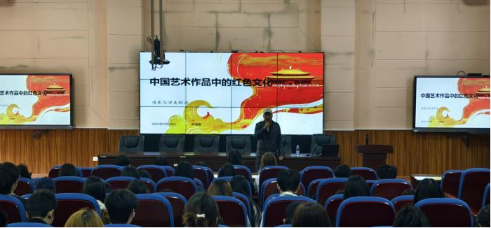 讲座中,朱渝刚老师以中国经典红色美术作品为切入点,系统梳理红色文化在美术创作中的发展脉络,深入解读代表性作品的时代背景、创作思路与艺术表现手法,细致剖析作品所承载的革命精神、民族气节与家国情怀,引导同学们在赏析中读懂红色美术的精神内核。