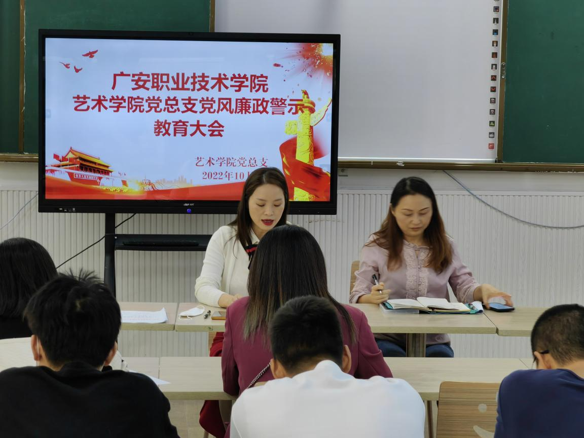 为持续筑牢党员干部思想堤坝,防微杜渐、未雨绸缪,坚定不移把全面从严治党推向纵深。10月18日下午,艺术学院党总支在致用楼218-1开展“以案为鉴·警钟长鸣”党风廉政警示教育大会,会议由党总支书记杨书琴组织,艺术学院全体党员、预备党员、入党积极分子参加。