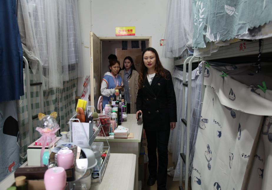 杨燕一行逐一查看了学院所有学生寝室,了解同学们近期学习、生活情况。在检查中发现大多数寢室物品摆放整齐,环境整洁卫生,个别寝室存在电线插座上床、物品摆放不齐、地板有烟头或垃圾较多等现象。针对检查中发现的不良现象当场进行了批评教育并要求其立即整改;同时表扬了遵规守纪、卫生整洁、环境美化的寝室同学,提醒同学们注重日常行为规范,养成良好的生活习惯,高度重视安全问题,杜绝安全隐患。