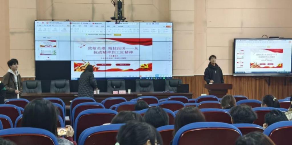 活动现场,学院团学联主席团成员依次登台演讲,以青春视角解读初心使命,用鲜活表达传递奋斗力量。此次讲座不仅深刻诠释了伟大抗战精神的时代价值,筑牢了同学们的理想信念根基,深化了对教育强国建设内涵的理解与认知,更引导青年学生在学思践悟、知行合一中,准确把握习近平总书记的殷切嘱托,持续增强听党话、跟党走的政治认同与行动自觉,激励大家以青春之我、奋斗之我,为民族复兴贡献青春力量。