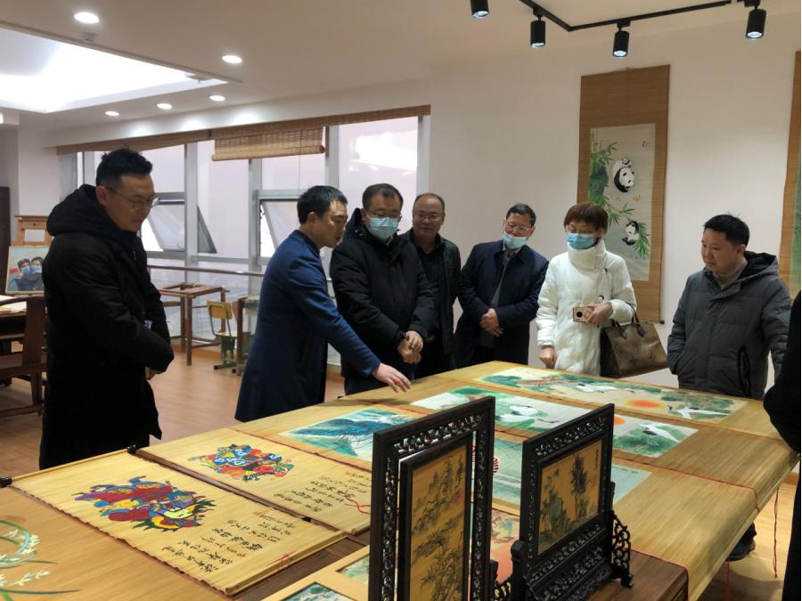 李桢一行先后参观了学校优质高校建设成果展、茂林艺术中心和郑才贵竹丝画帘技能大师工作室。李桢在技能大师工作室深入了解竹丝画帘发展历史、制作工艺、作品创作、传承创新等情况。艺术学院院长杨小锋对技能大师工作室建设情况作了详细汇报,李桢对技能大师工作室在竹丝画帘传承与创新、科研、技能比赛等方面取得的成绩给予了充分肯定,并指出,竹丝画帘传承与创新要和文创产品结合起来,不断完善非遗项目的造血功能,增强工作室的社会服务能力。