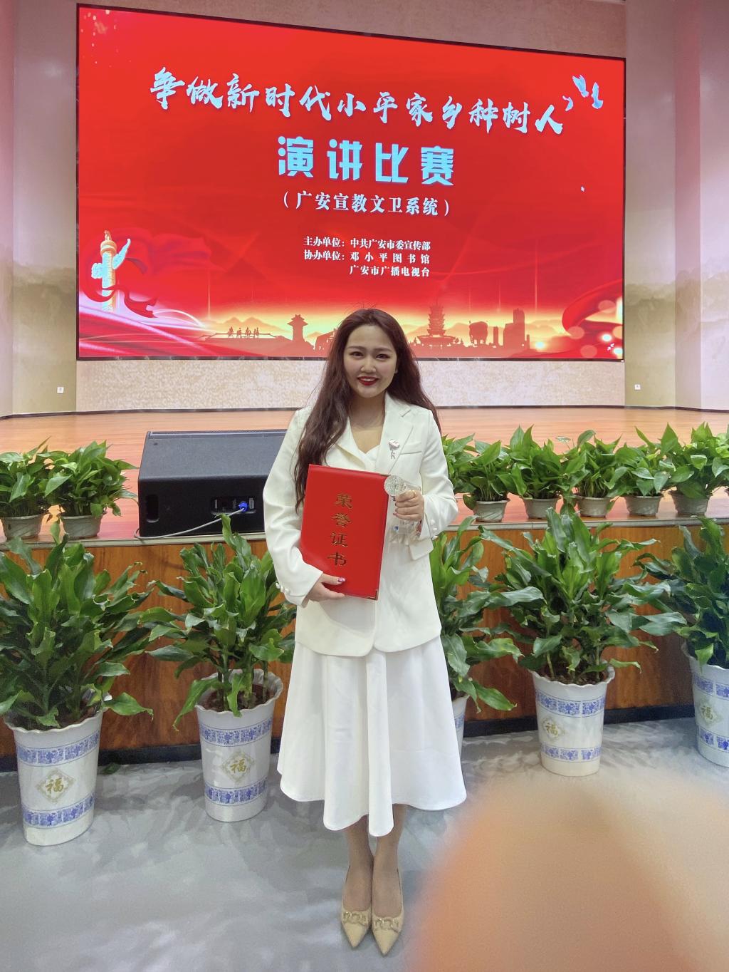 近日,艺术学院讲师徐畅参加了由四川省广安市委宣传部主办的广安宣教文卫系统“争做新时代小平家乡种树人”演讲比赛,并荣获二等奖。