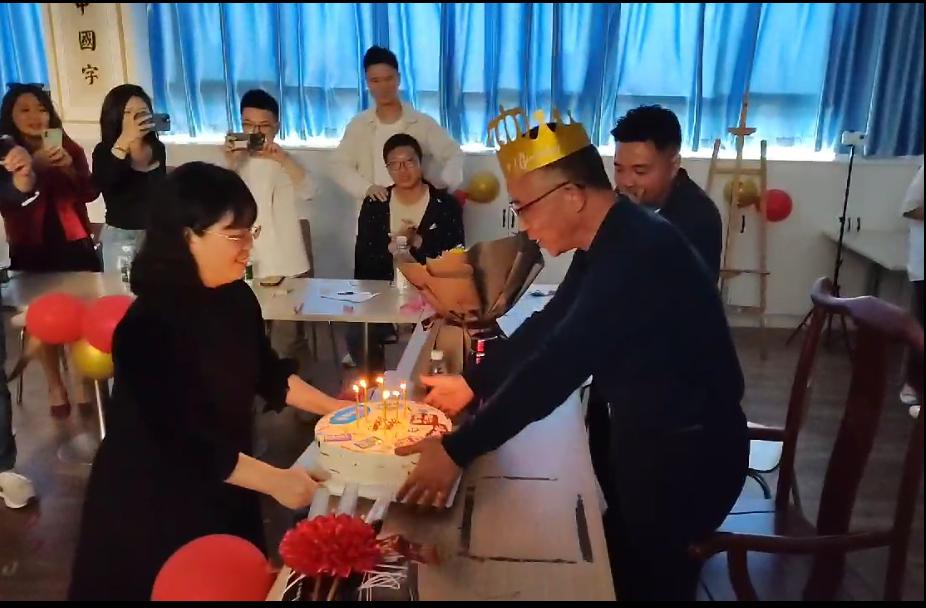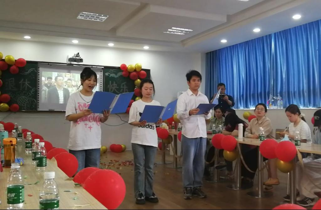 仪式开始前,大屏幕上播放了由何教授从教30余年工作和生活影像剪辑的短片。青年教师代表陈茜芸为何教授献上了鲜花;王雪松代表学院致辞,向即将光荣退休的何春林教授致以美好的祝福,对何教授长期以来的辛勤耕耘和无私奉献表示诚挚的感谢!同时衷心希望何老师在合理安排好自己退休生活的同时,能够一如既往地关心、关注和支持学院发展,尤其是在专业建设、课程改革、社会服务、人才培养、提携和帮助青年教师成长等方面继续发挥言传身教、立德树人的激励作用。副院长黄政倾情献唱一首《祝福》,学生代表情真意切的一首诗朗诵,代表历届学生及弟子表达对老师的深深祝福;何春林副教授作了感人肺腑的退休感言,既回顾了三十多年教学生涯,亲身经历和见证学校的发展,也表达了对学院和同事、学生们的感谢和不舍,同时表态将退休不退志,离岗不离心,一如既往在教学工作上发挥余热和作用;最后,唐清华副教授代表全院师生为何教授送上了生日蛋糕,在生日祝福的歌声中,整个仪式推向了高潮,现场所有师生及校友纷纷为何教授送上了祝语,充满着浓浓祝福之意,涌动着涓涓红烛之情。仪式结束后所有师生进行了合影留念。