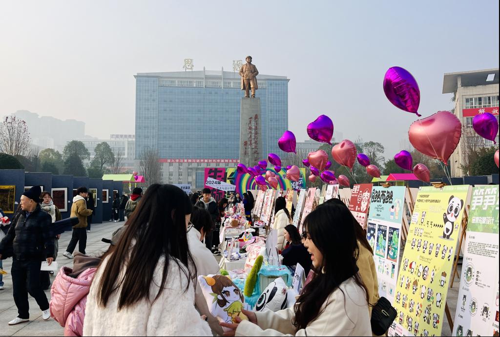 12月27日,艺术与设计学院2024届学生毕业作品展在小平广场开展。市二级巡视员、市文艺评论家协会主席侯立新,市文联党组成员、秘书长周永生,学校党委委员、组织部部长白文春,市博物馆馆长唐云梅,市社科联办公室主任王曲波等出席开幕式并剪彩,活动由学院院长王雪松主持。