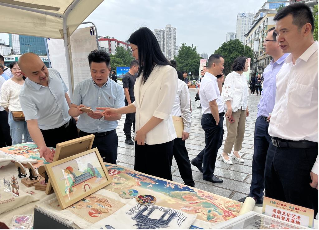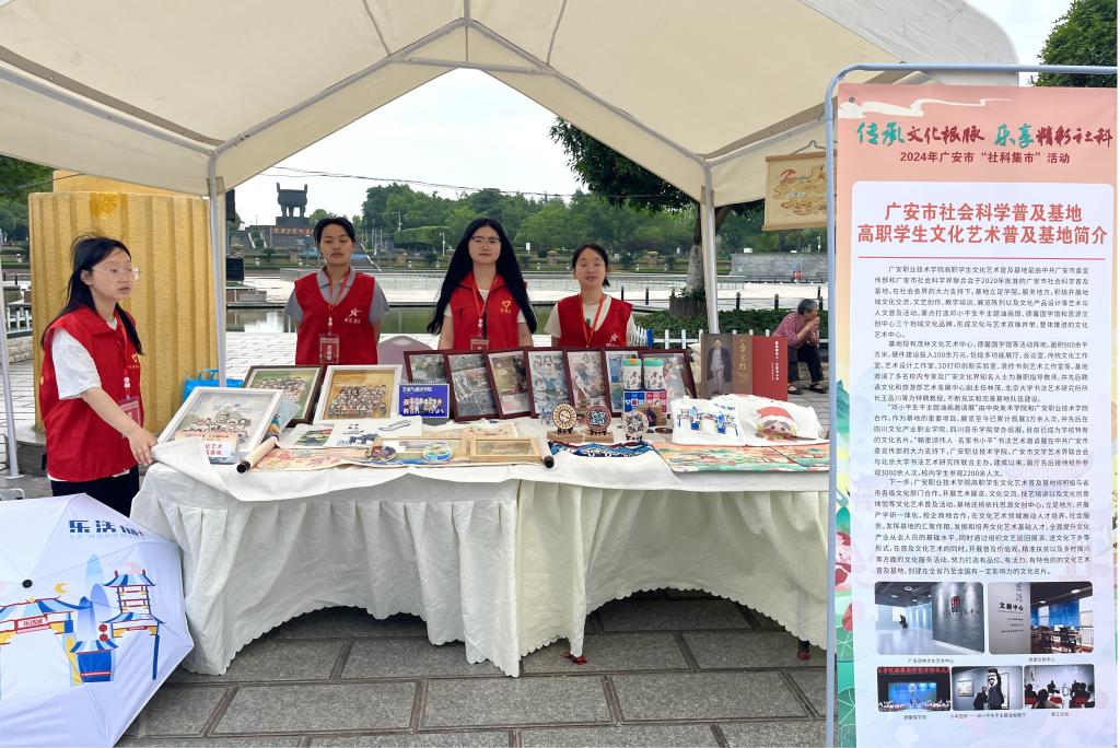 5月12日上午,由中共广安市委宣传部、广安市社科联主办的社科普及活动“传承文化根脉 乐享精彩社科”——2024年广安市“社科集市”在思源广场开集。高职学生文化艺术普及基地作为协办单位参与此次活动。