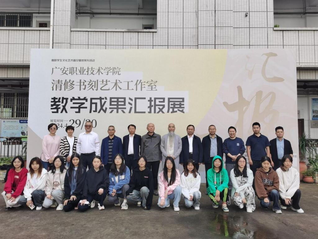 4月29日至30日,广安职业技术学院清修书刻艺术工作室教学成果展在致用楼天井广场举行。市文联原主席童光辉,市文艺评论家协会主席侯立新,市社科联主席孙勇等亲临现场观展指导。