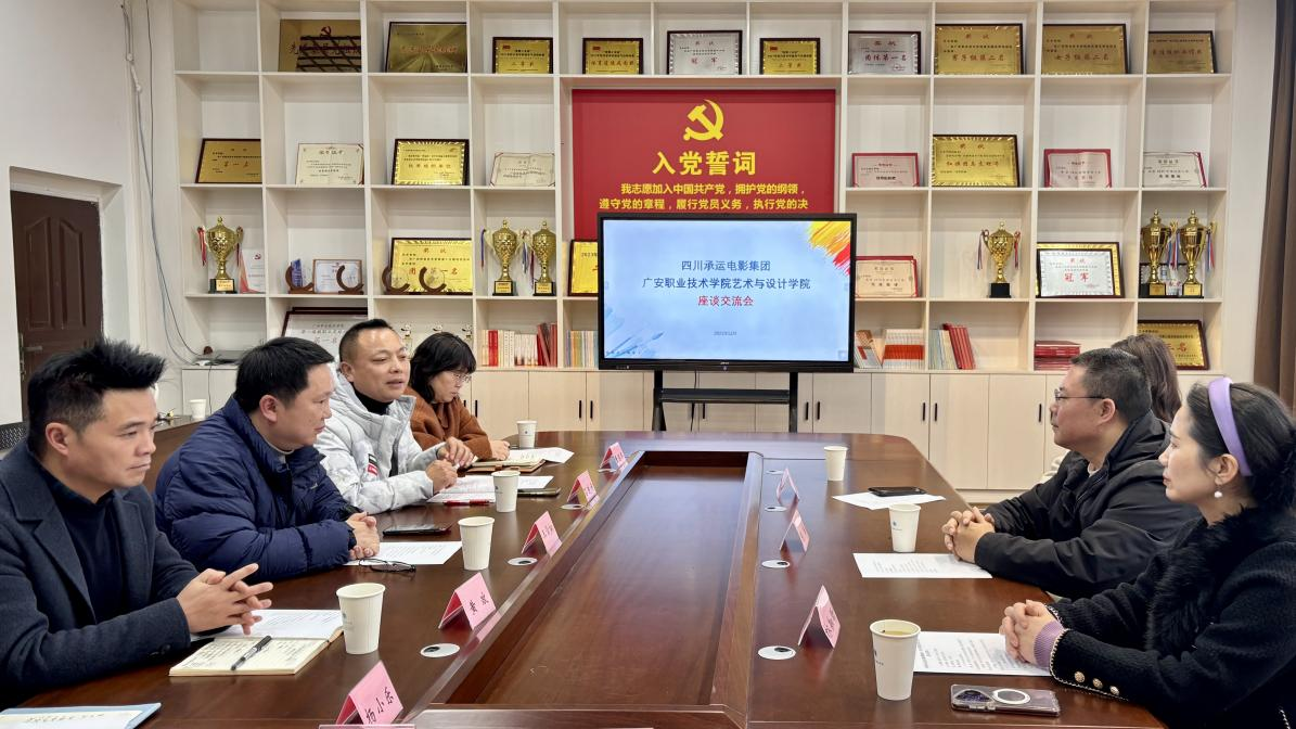 12月10日,中国红色文化研究会常务理事、广安市电影家协会主席陈成率四川承运电影集团负责人一行来校开展座谈交流。艺术与学院、红色文化研究中心负责人及相关专业教师参加座谈,会议由由艺术与设计学院院长王雪松主持,双方围绕校企合作、红色文化传播及人才培养等议题展开深入探讨。