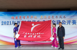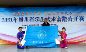 5月2日—4日,由四川省武术协会、四川省学生体育艺术协会共同主办的“迎建党百年华诞,展校园武术风采”2021年四川省武术套路公开赛,在成都市温江区体育馆内举行。广安职业技术学院武术套路代表队由艺术学院范智勇老师担任领队,蒲泓静老师担任教练,带领20级社会体育专业2名同学参赛。本次比赛共有来自全省139所学校参加。