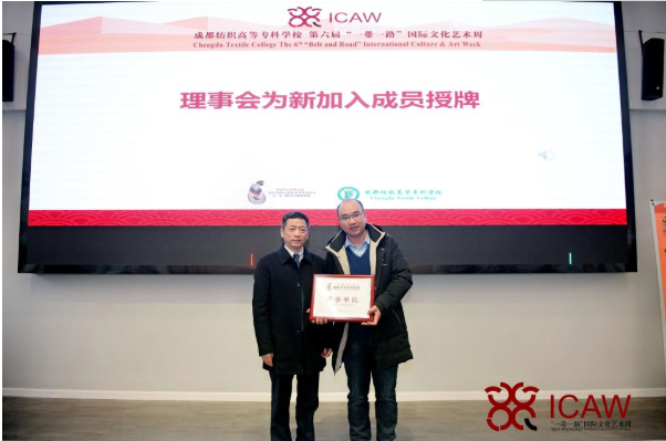 “一带一路”国际艺术教育联盟现有国内外、省内外、院校、行业企业、政府机构领域超过100家单位加入, 旨在艺术领域促进交流与发展, 在不同的文化艺术间搭建起相互沟通的桥梁;通过艺术教育交流与合作, 为民心相通架桥铺路,为共建“一带一路”培养急需艺术人才。在本次理事会上,全体与会理事成员单位代表全票通过我校加入“一带一路”国际艺术教育联盟,联盟理事长、成都纺专校长夏平教授现场向我校颁发了理事单位证书。