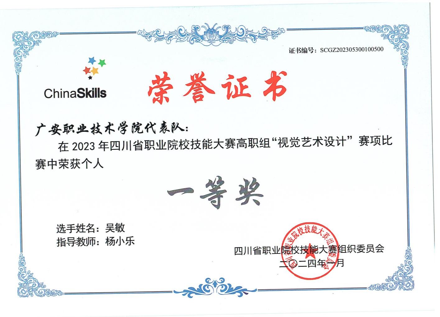 学生荣获四川省职业院长技能大赛一等奖