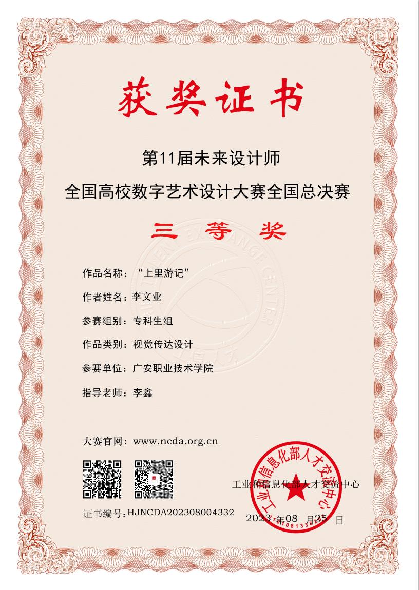 学生获全国高校数字艺术设计大赛三等奖